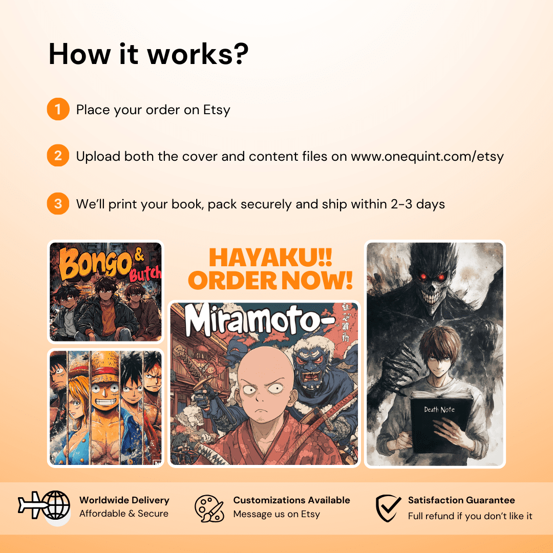 Bring your favorite manga series to life with our premium custom printing service! Perfect for collectors, avid readers, or those who simply love the feel of a real book in their hands.